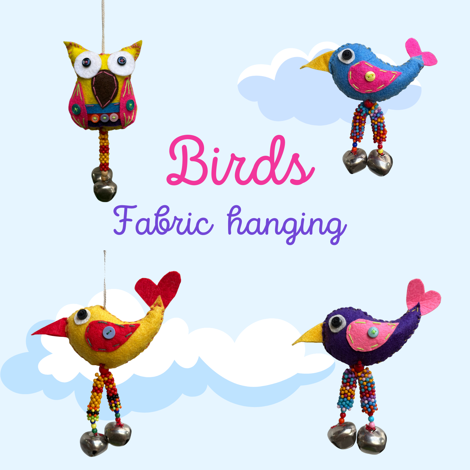 Add a playful touch to your balcony, room, or window with these handmade cotton colorful birds. Soft, washable, and vibrant, they bring cheerful charm wherever they hang, creating a whimsical and inviting atmosphere that delights both kids and adults alike.