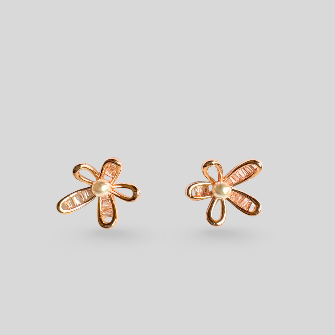 Add a touch of whimsy to your look with these Floral Pearl Rose Gold Earrings. Delicately crafted to mimic blooming roses, each earring sparkles with lustrous pearls set in warm rose gold. Perfect for brightening up any outfit, they bring a playful charm that’s both elegant and fun. Let your style blossom!