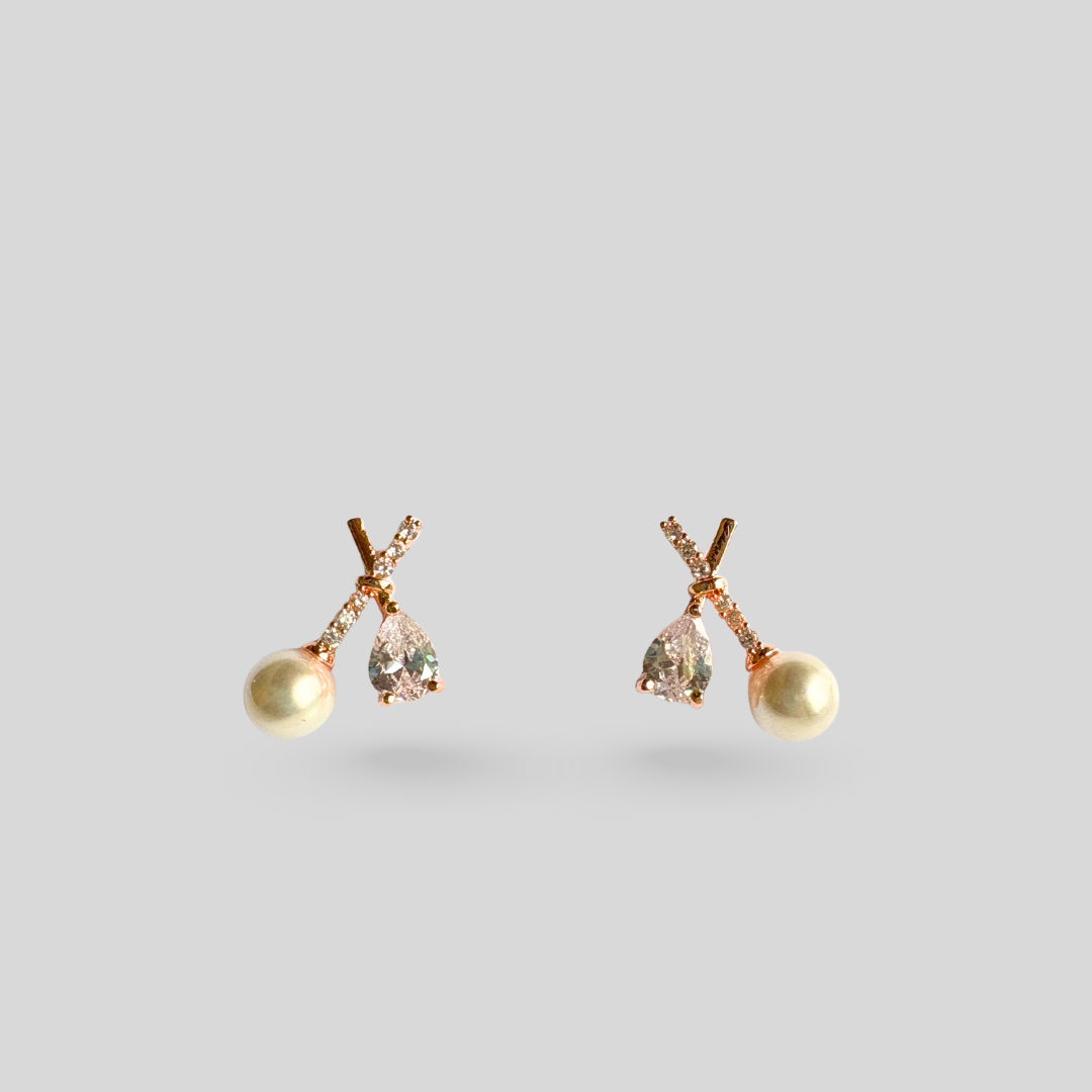 Pearl & Stone Designed Rose Gold Anti Tarnish Earrings