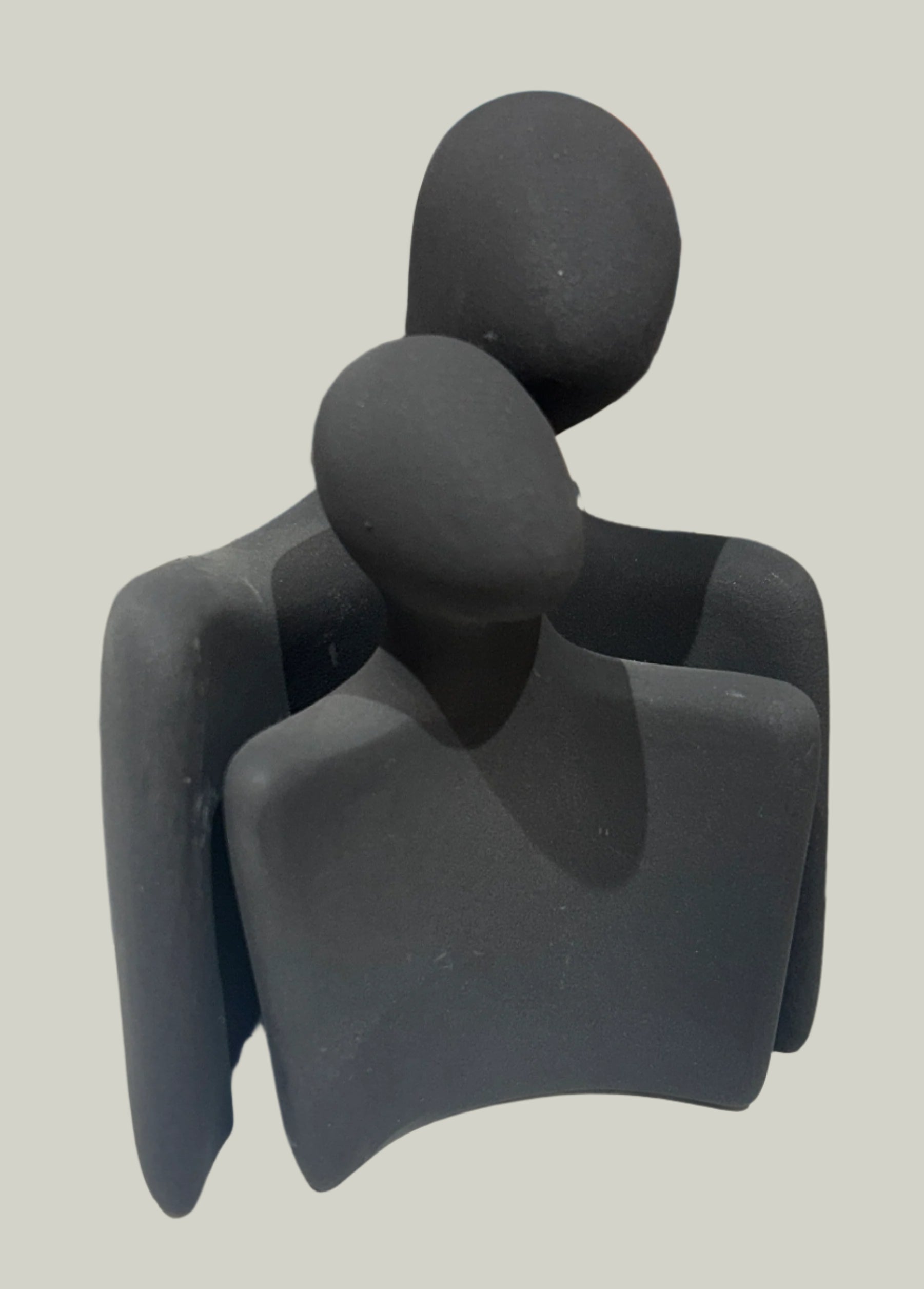 Indulge in the romantic charm of our handcrafted ceramic figurine sculpture. With a mesmerizing matt finish, this black sculpture captures the essence of a passionate couple in love. Elevate your decor or surprise your partner with this unique and heartfelt piece. Fall in love all over again.