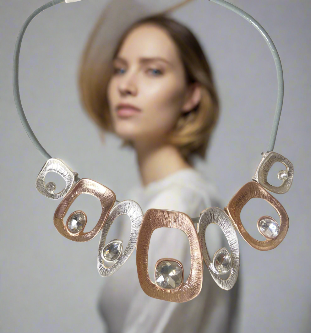 Silver and rose gold with stone necklace